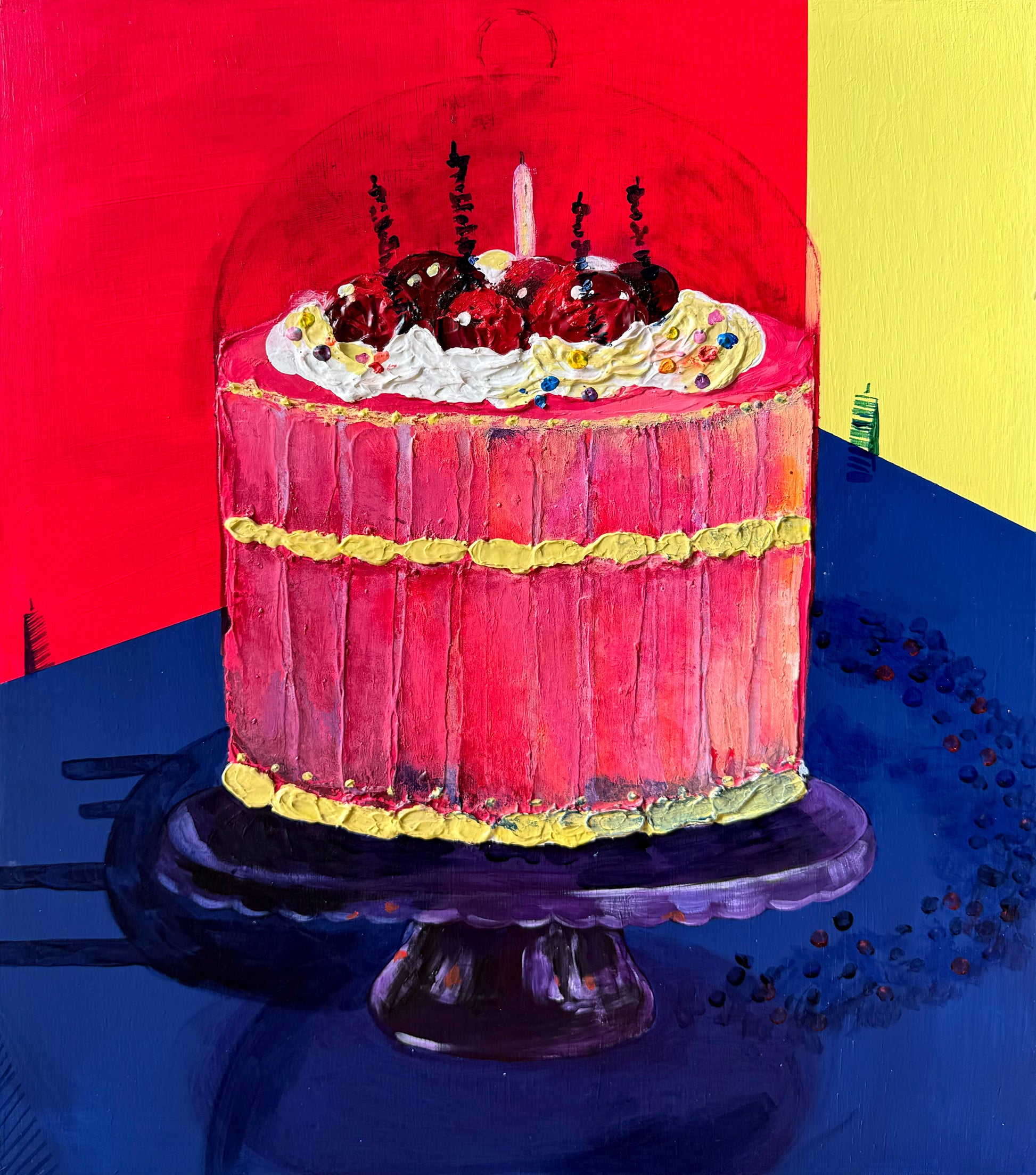這個蛋糕並非甜美的象徵。它冰冷的表面與模糊的蠟燭痕跡,標記了物件角色結束的瞬間,只留下它靜謐的空洞。
